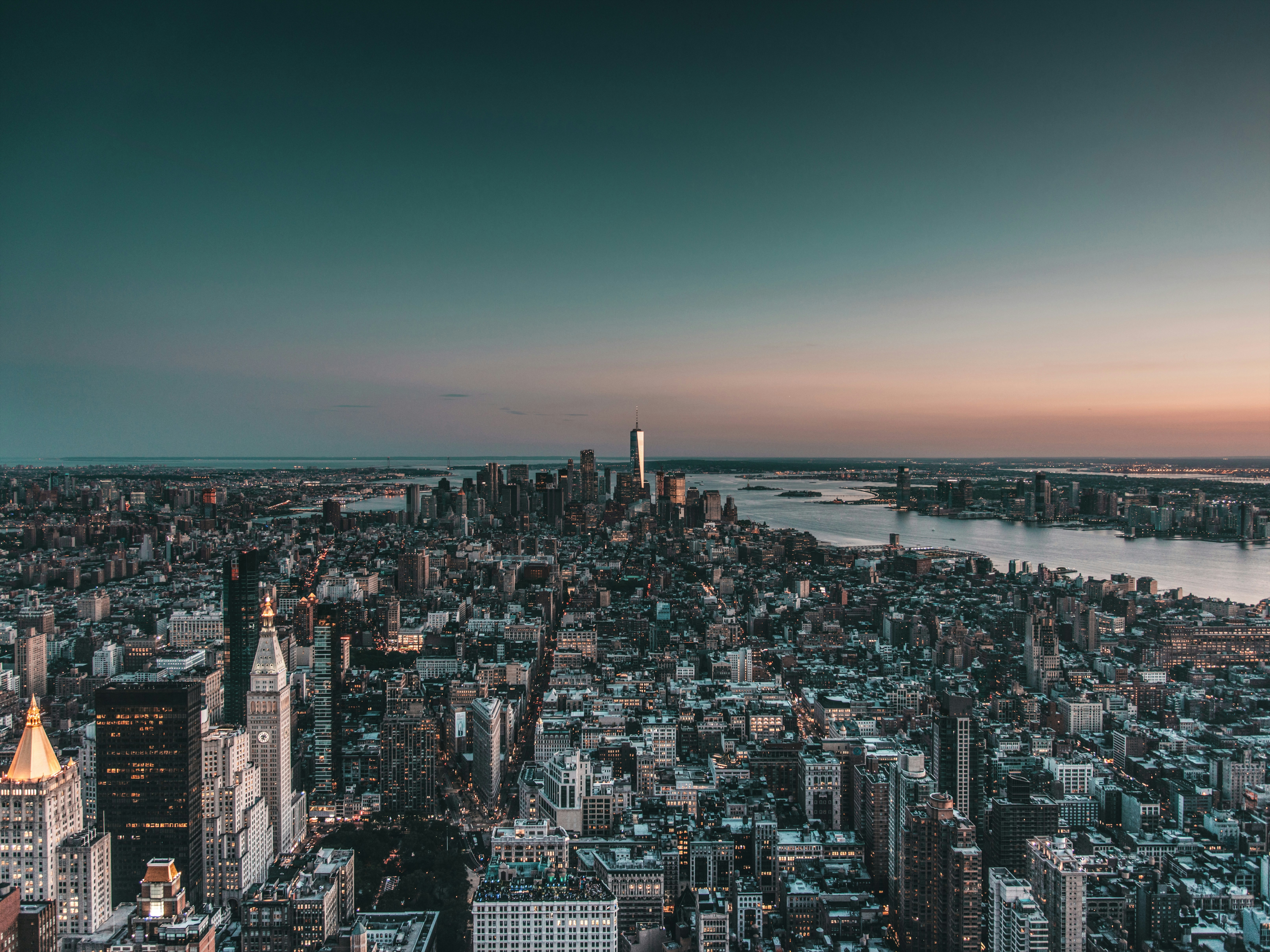 Cityscape Buildings With Glittering Lights Reflection On River Water Under Purple Sky K K HD New York Wallpapers HD Wallpapers ID 5472х3648